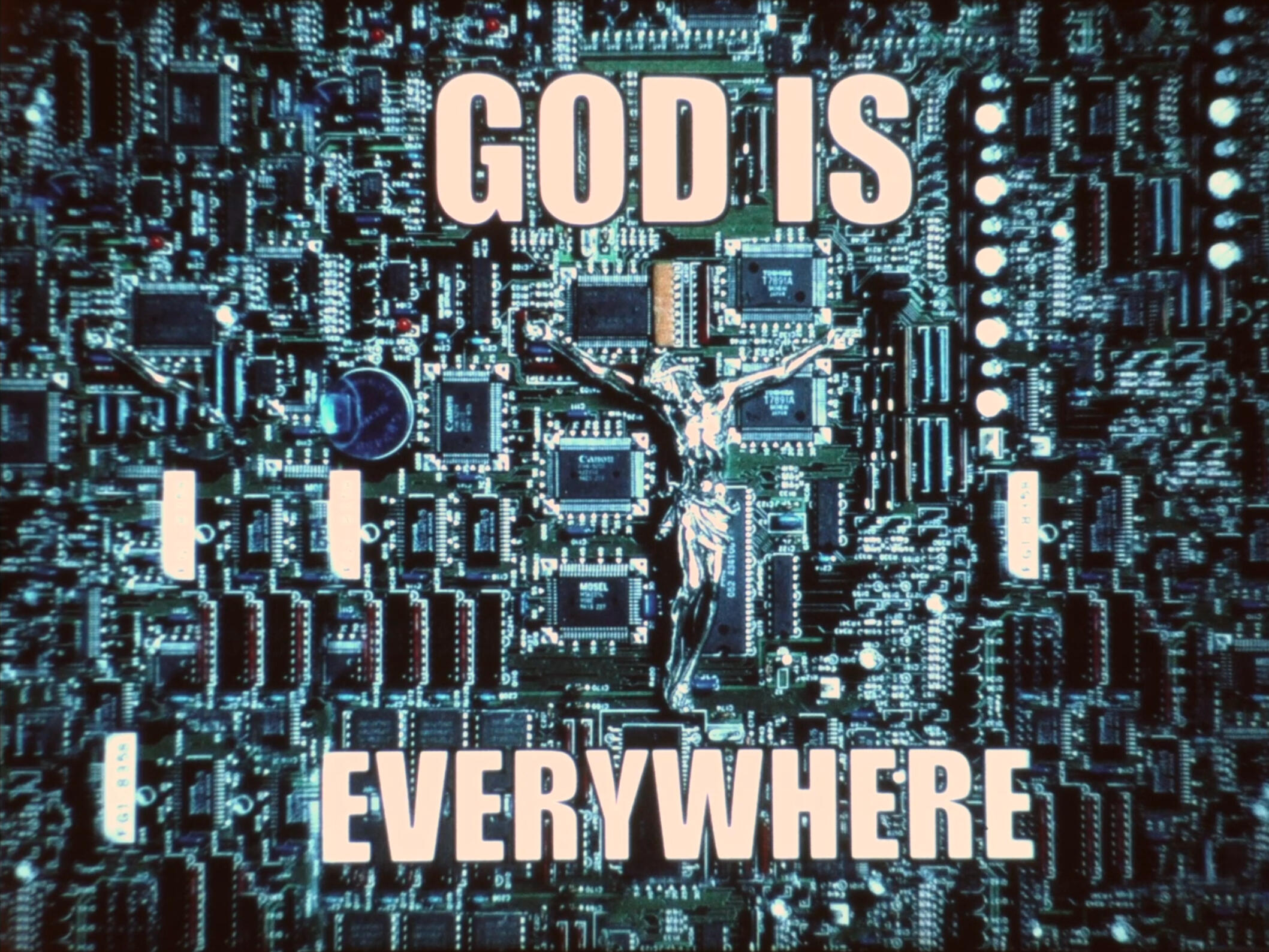 God is in your Google search engine, in your microwaved dinner, in your personal notepad, in your body dysmorphia, in your atheism, in the way you observe things. God, or the Internet, however you would like to call it, work similarly. Omnipresent, influential, and permeating everything in its path, at the same time and everywhere. An entity that materializes through the infinite traffic of images.